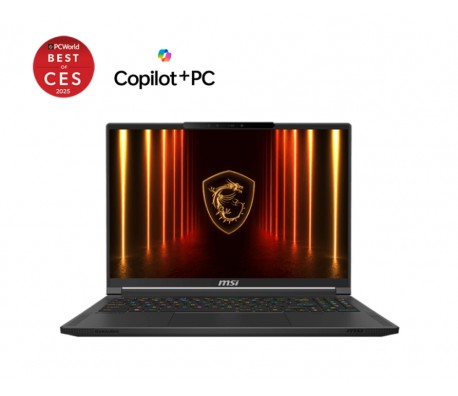MSI Stealth A16 AI+ A3XWHG, NVIDIA GeForce RTX 5070 Ti 12GB GDDR7 992 AI TOPS, AMD Ryzen AI 9 HX 370 (12C, 24T, Up to 5.1 GHz 24MB L3), 16" 16:10 QHD+(2560x1600) OLED, 240hz, 1ms, 32GB DDR5 LPDDR5x-7