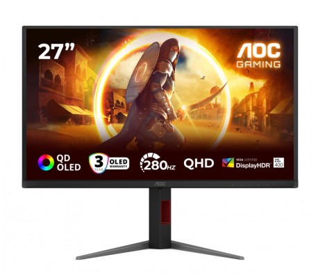 AOC Q27G4ZD, 27" QD-OLED, 2560x1440@280Hz, 0.03ms GtG, 1.5M:1, 1000cd m/2, Adaptive Sync, FlickerFree, Anti Blue Light, Tilt, Height Adjust, Pivot, Swivel, 2xHDMI, DP, USB hub
