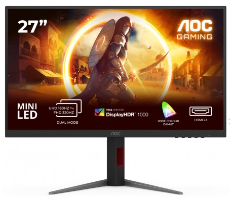 AOC U27G4XM, 27" Fast IPS MiniLED, 3840x2160@160Hz, 1ms GtG, 1200cd/m2, 1000:1, 80M:1 DCR, Adaptive Sync, FlickerFree, Low Blue Mode, Tilt, Height Adjust, Pivot, Swivel, HDMI, DP, USB hub