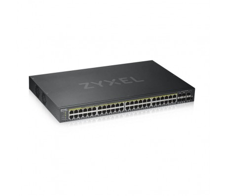 ZyXEL GS1920-48HPv2, 50 Port Smart Managed PoE Switch 44x Gigabit Copper PoE and 4x Gigabit dual pers., hybrid mode, standalone or NebulaFlex Cloud, 375 Watt PoE