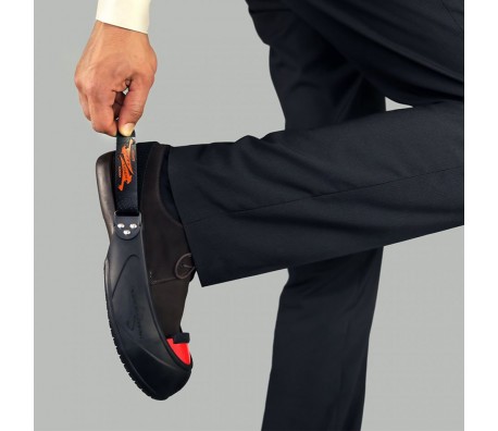 Защитно бомбе за посетители изработено от гума / алуминиево-титаниево бомбе. Регулираща се каишка с велкро, цветово кодирани размери и противоплъзгащо Tiger-grip® ходило. Подходящи за всички видове обувки, дори и на ток.