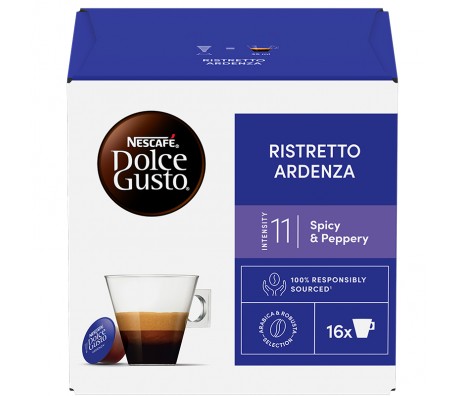Открий NESCAFÉ® Dolce Gusto Ristretto Ardenza® - късо кафе, ристрето (35 ml), най-силното кафе в нашата колекция. Наслади се на ароматните нотки на сушени червени плодове, хвойна и на продължителния пикантен послевкус.
