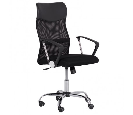 Материал еко кожа + мрежа, еко кожа Размери цяло изделие 62*61*104-114 см. Дълбочина седалка 49 см, Височина седалка 45-55 см, Дължина облегалка 60 см. База хром Подлакътници полипропилен Газов амортисьор, коригиране височина, люлееща функция