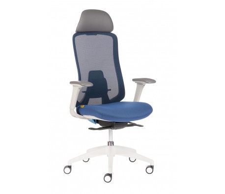 Eргономичен стол с мрежеста облегалка и полиуретанова седалка тапицирана с четири възможни цвята регулируема лумбална опора регулируема облегалка за глава саморегулиращ се синхронен механизъм с възможност за заключване в четири позиции SL механизъм за регулиране дълбочината на седалката 4D регулируеми подлакътници с меко покритие стилна кръстачка с колелца за всички 60 мм за всички видове настилки максимално натоварване до 120 кг гаранция 36 месеца #Ergonomics 1