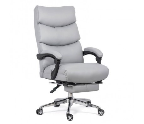 Стол SALVADOR е удобен и практичен стол както за офиса, така и за дома. Притежава допълнителна опора за крака, при нужда от почивка в натоварения работен ден. А-синхронният механизъм на седалката позволява на потребителя да регулира височината, както и да се върти на 360 ° . Но основната функция е да сгънете облегалката под ъгъл от около 145° , като просто натиснете лоста под седалката. Тапицерията на модела е изработена от екологична кожа, лесна за поддръжка. Подлакътниците са подплатени и тапицирани с еко кожа. Основата на седалката е издръжлива, изработена от хромирана стомана, което прави продукта издържащ на тежести до 120 кг. Модерни сиви колелца допълват дизайна на модела. Цвят: сив Размерите му са: височина на стола: 112-119 см; височина на седене: 48-55 см; височина на облегалката: 83 см; ширина на седалката: 62 см; ширина x дълбочина на седалката: 54 x 54 cm.