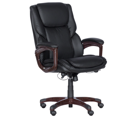 MARSHAL е стилен директорски офис стол от еко кожа с широка седалка, удобна облегалка и меки подлакътници. Изисканата му визия ще придаде луксозен вид на офиса, а люлеещата му функция ще направи ежедневието ви по-комфортно.