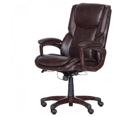 MARSHAL е стилен директорски офис стол от еко кожа с широка седалка, удобна облегалка и меки подлакътници. Изисканата му визия ще придаде луксозен вид на офиса, а люлеещата му функция ще направи ежедневието ви по-комфортно.