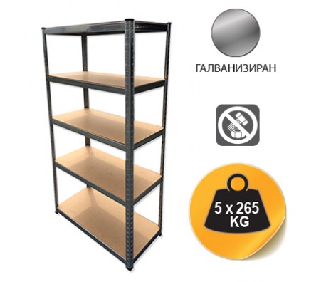 СТЕЛАЖ МЕТАЛЕН 180/90/40 5 РАФТА МДФ Х 265 КГ